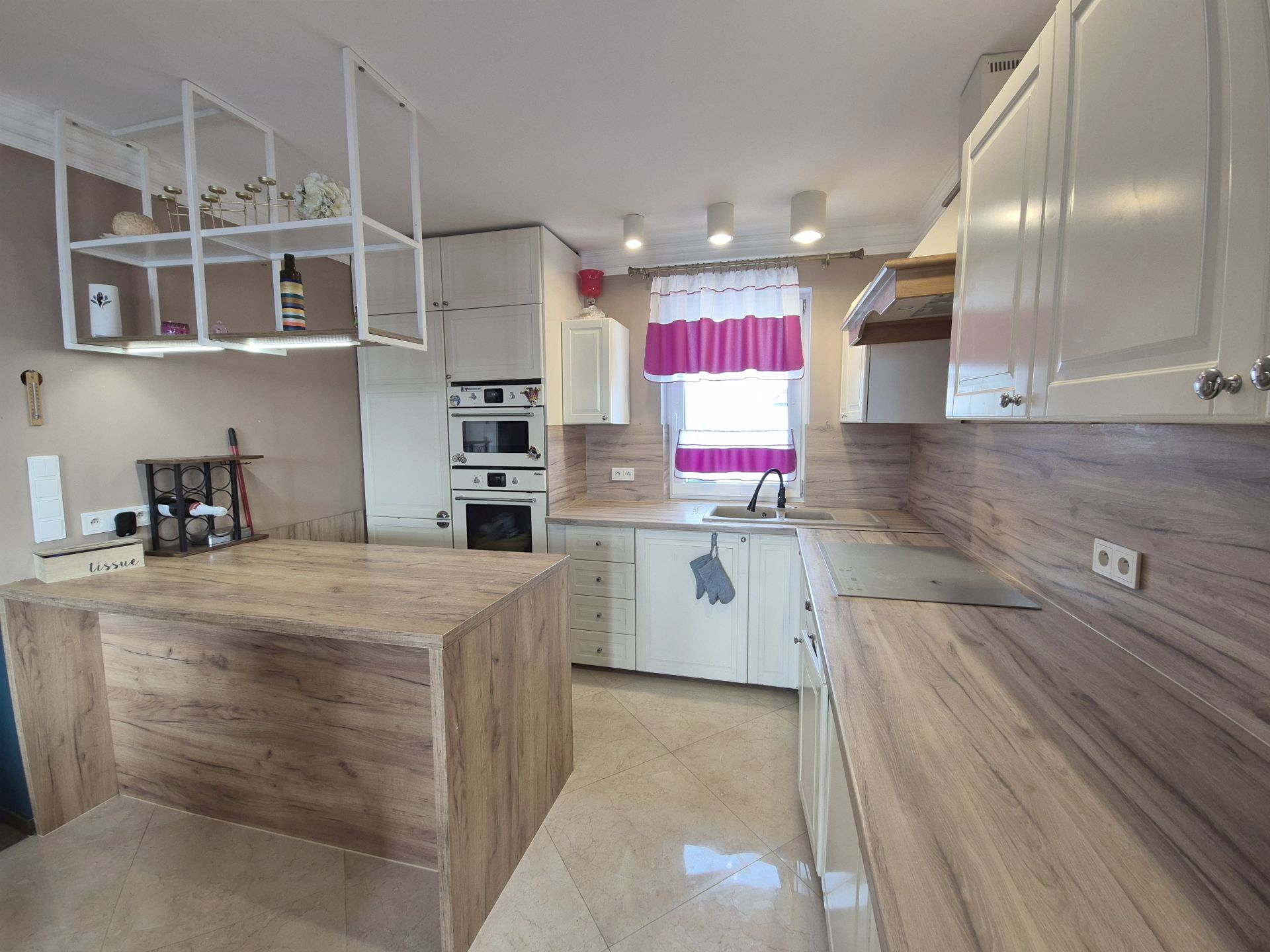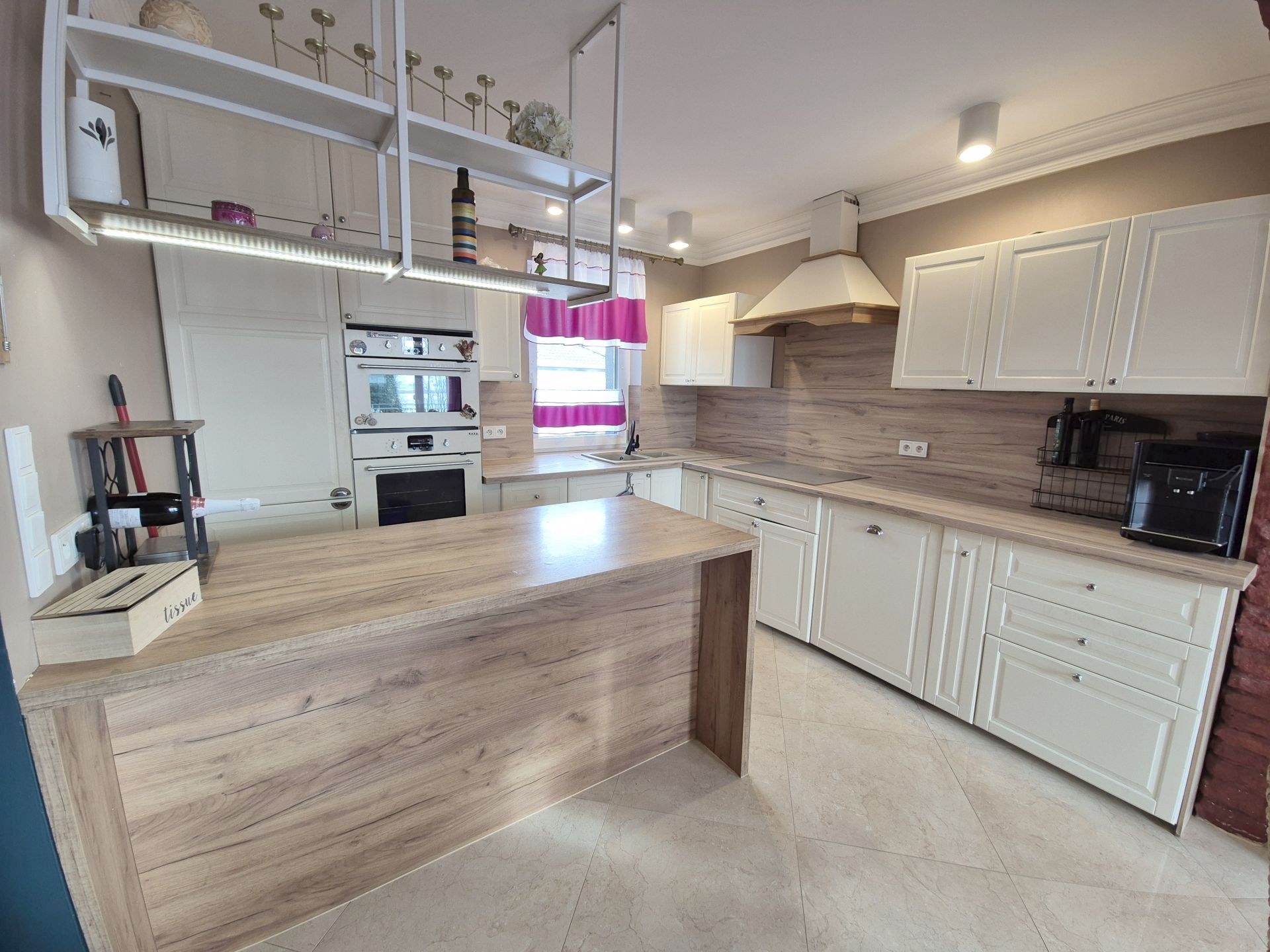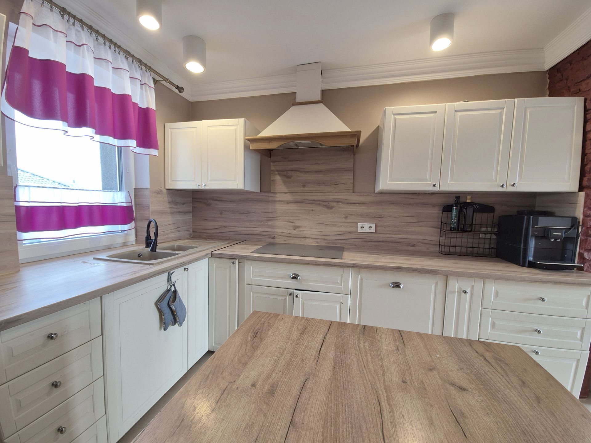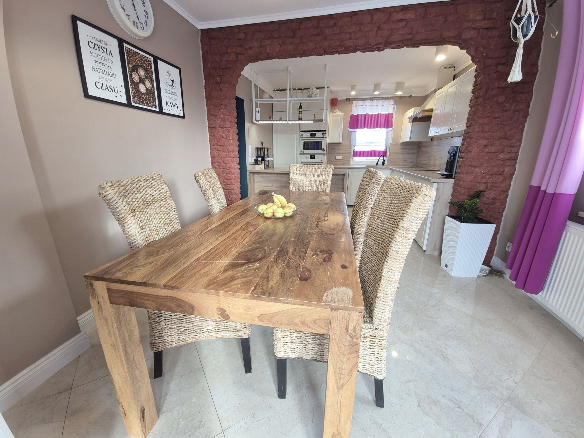 Kuchnia w zabudowie, wyposażona we wszystkie niezbędne sprzęty AGD, które pozostają na stanie nieruchomości.