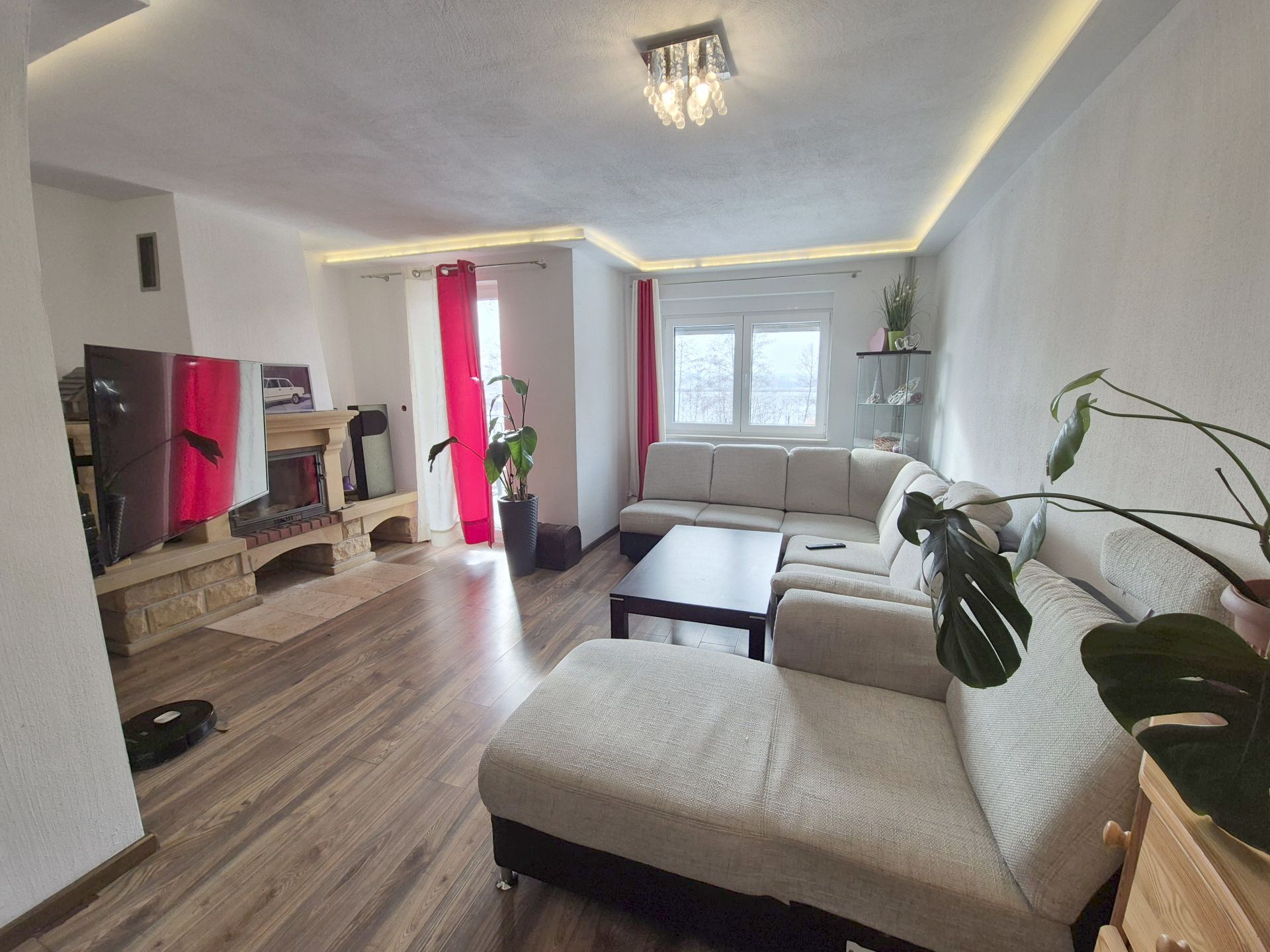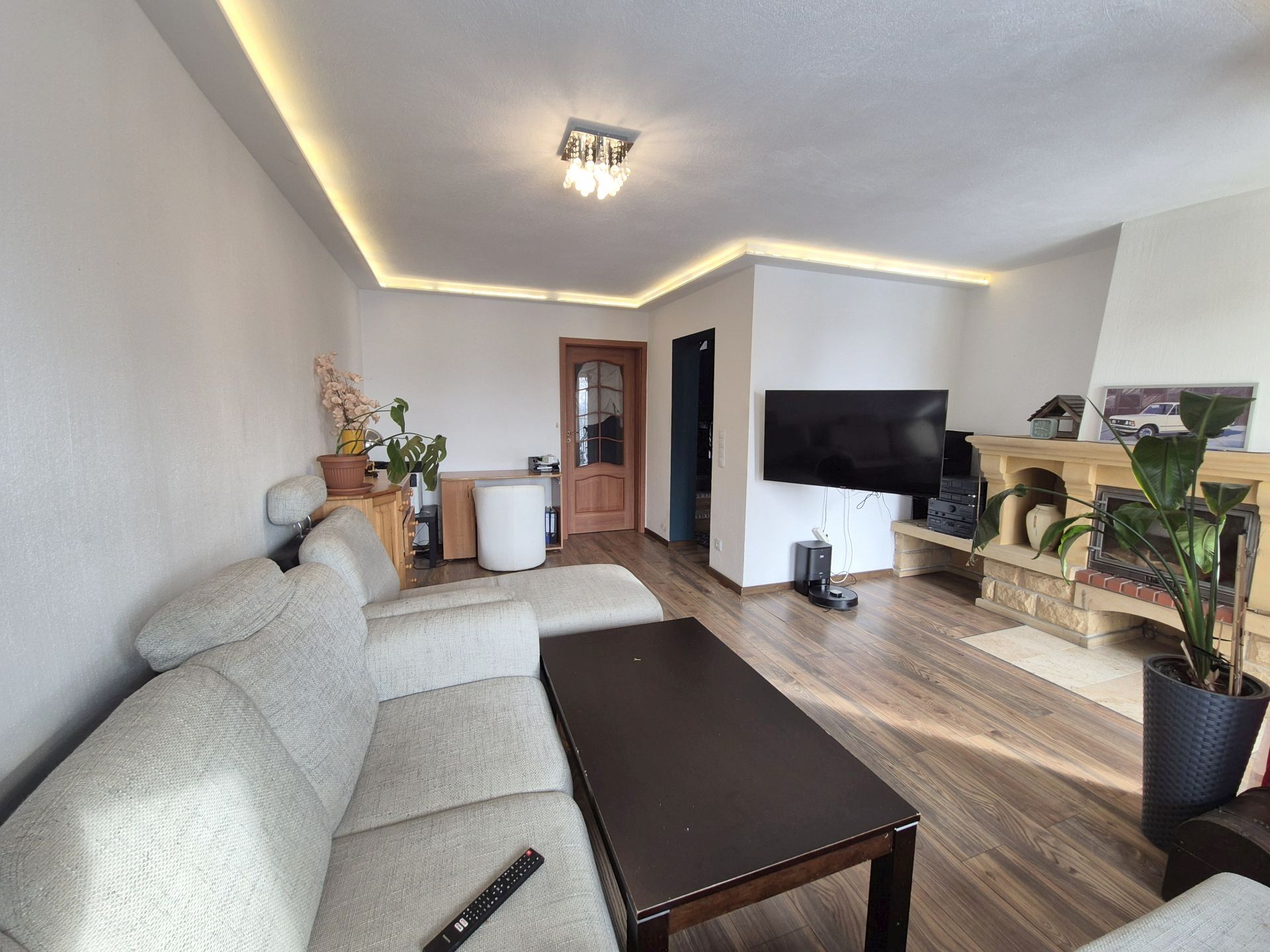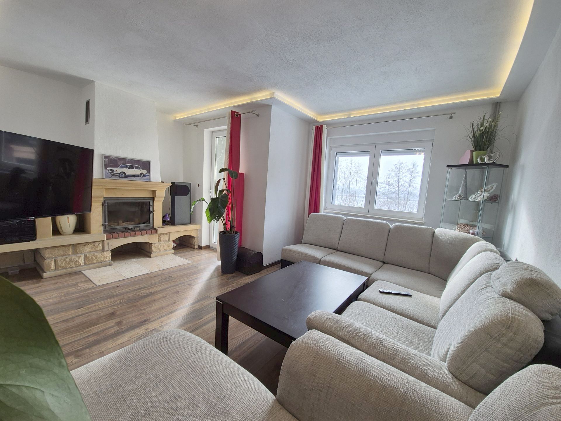 Dodatkowe źródło ciepła – kominek w salonie.