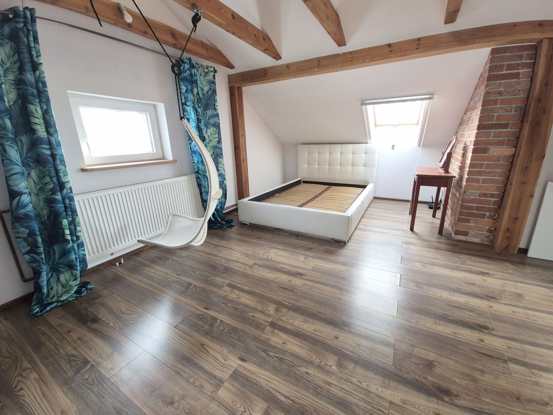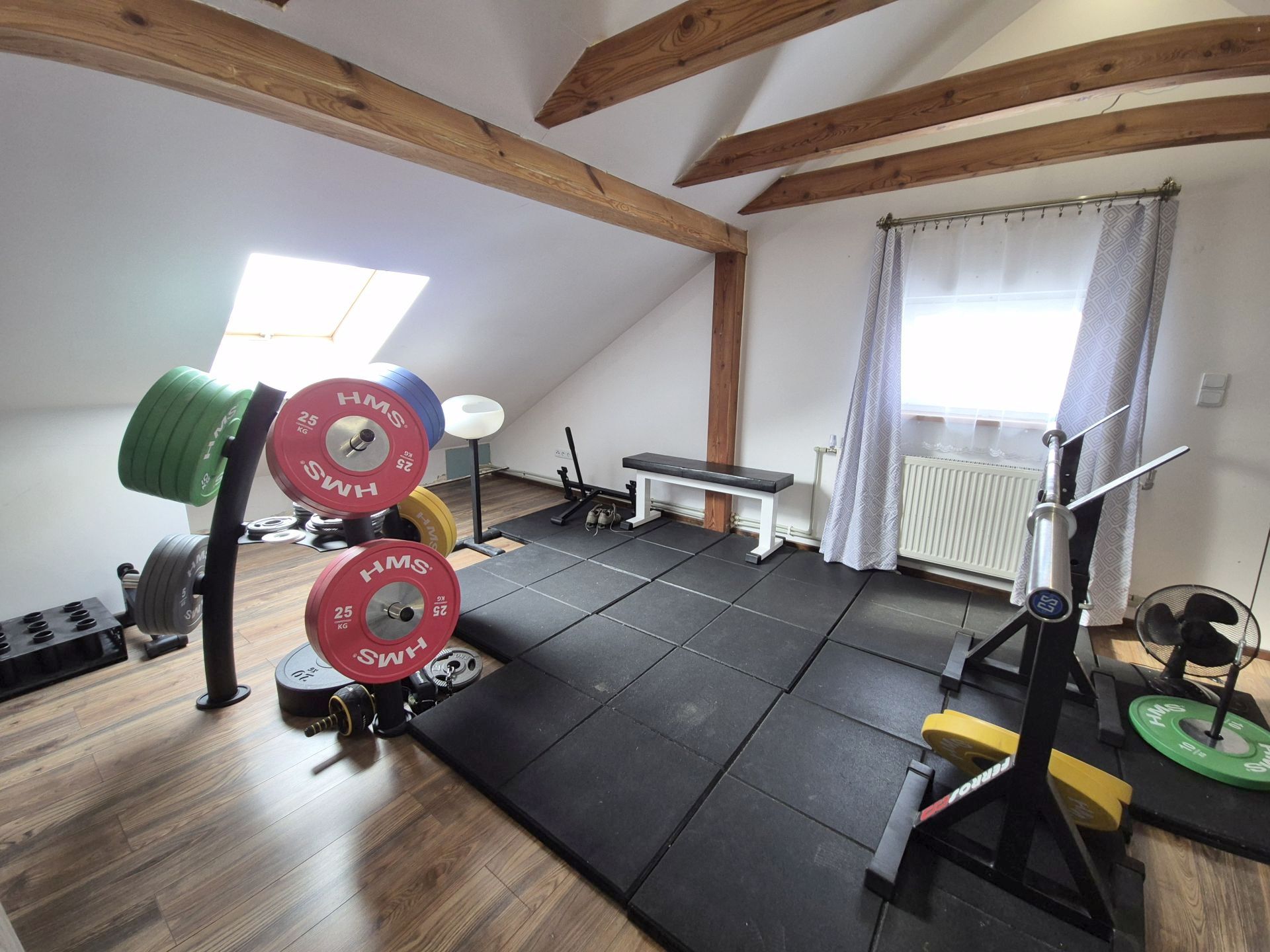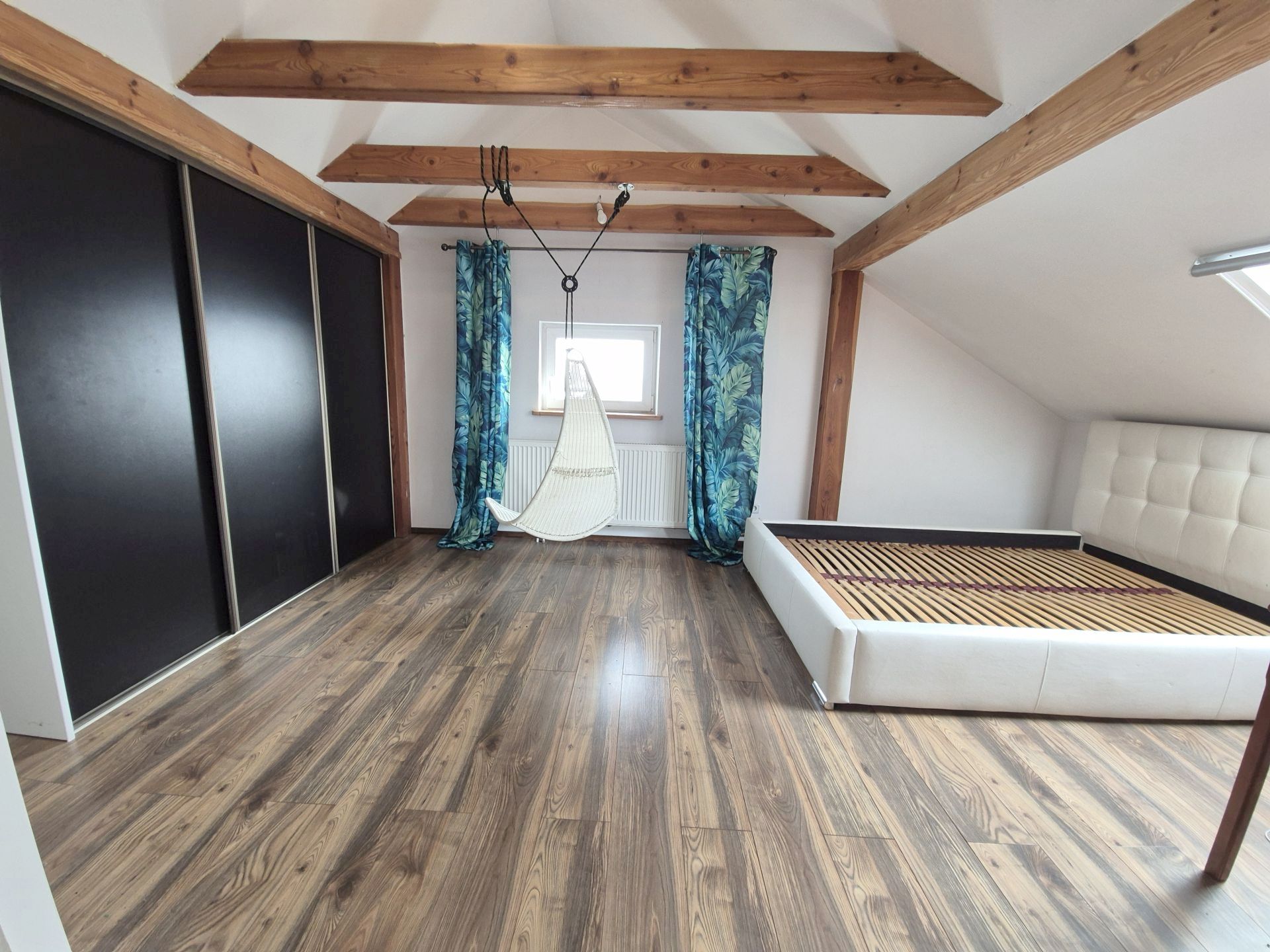Duża garderoba na poddaszu użytkowym plus prywatna siłownia.