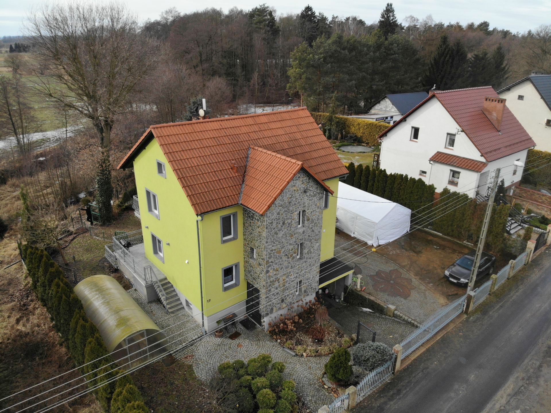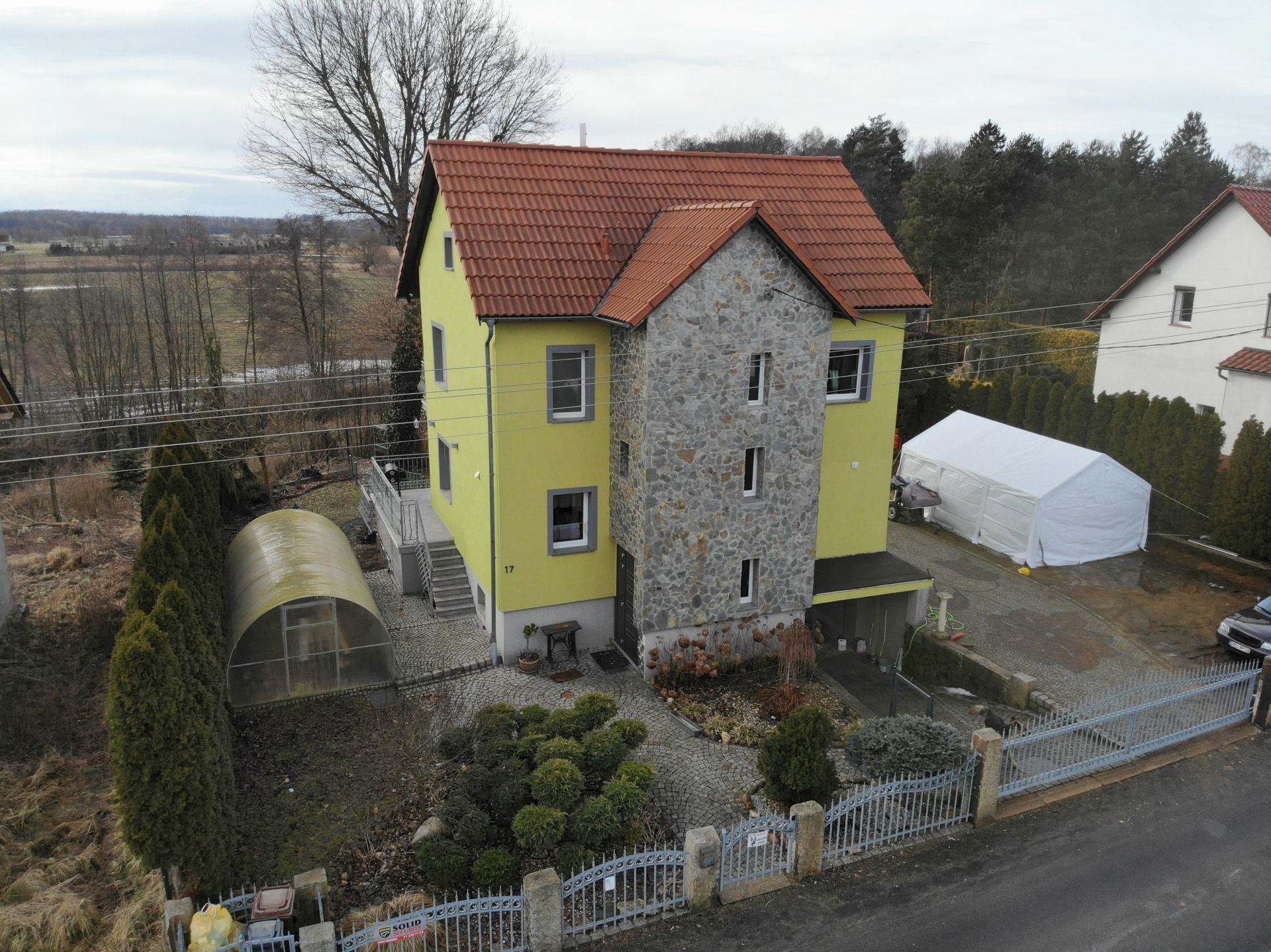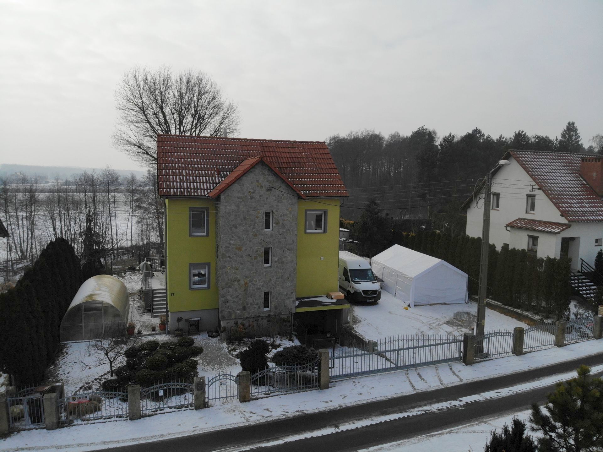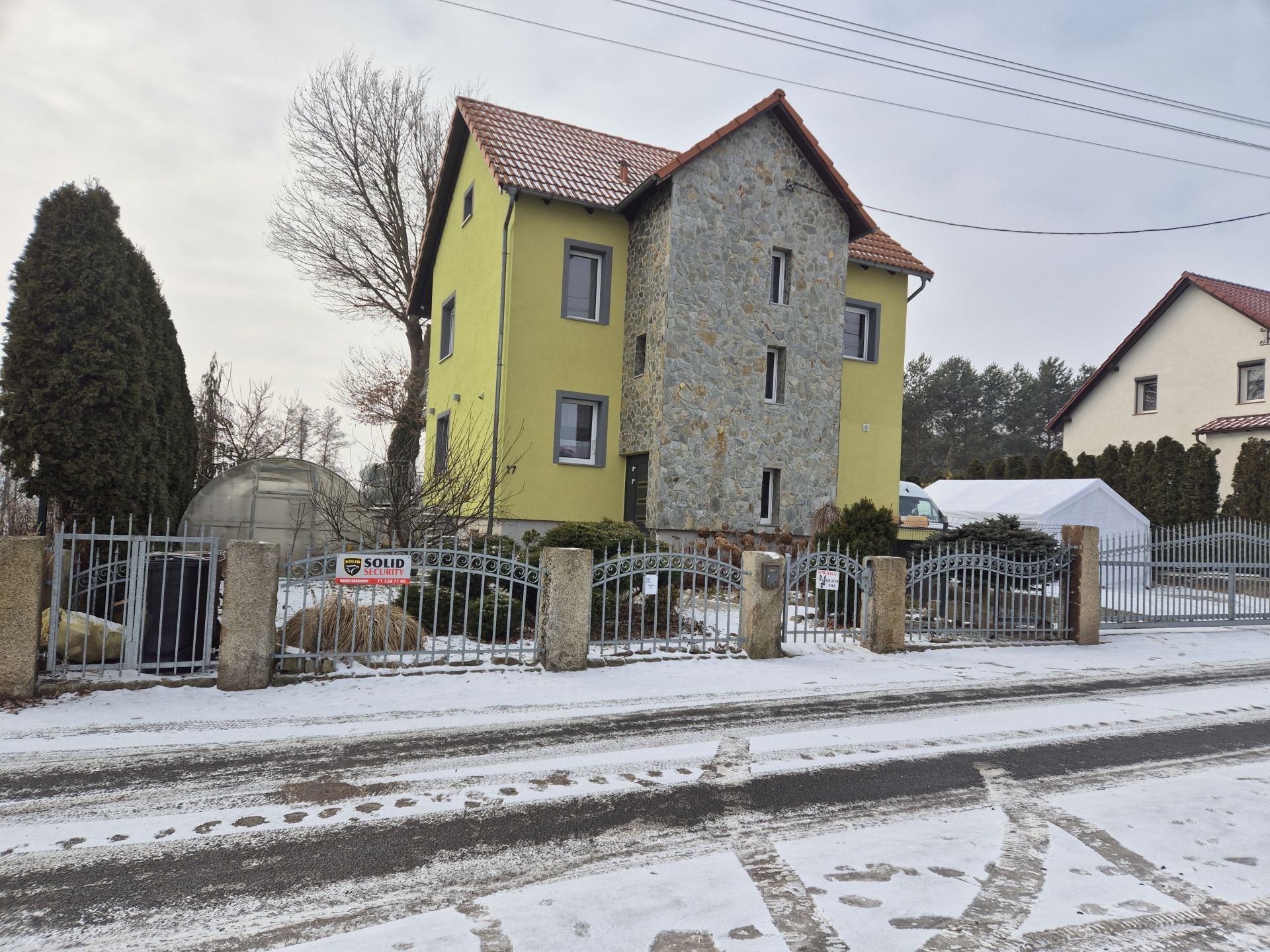 Solidny dom wybudowany z wysokiej jakości materiałów budowlanych i wykończeniowych.