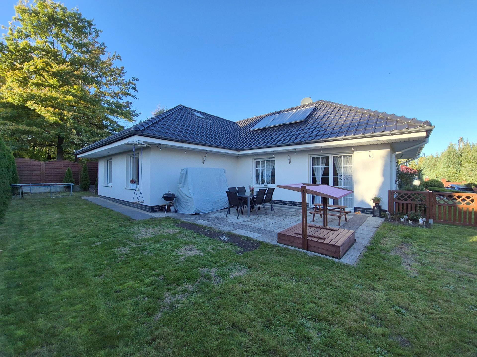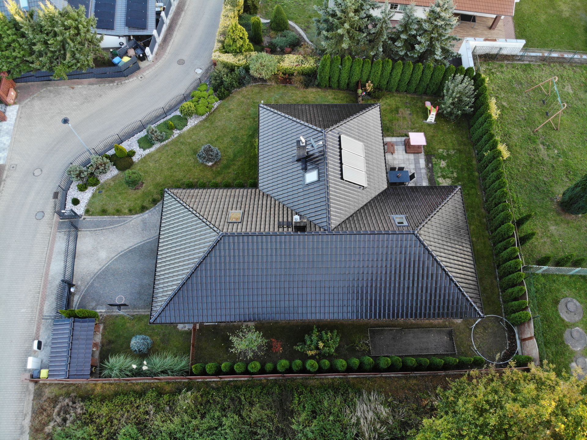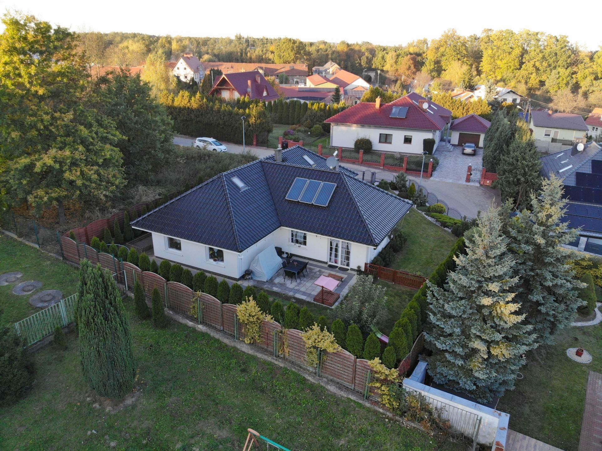 Zamontowane panele słoneczne na dachu (solary) – oszczędność energii.