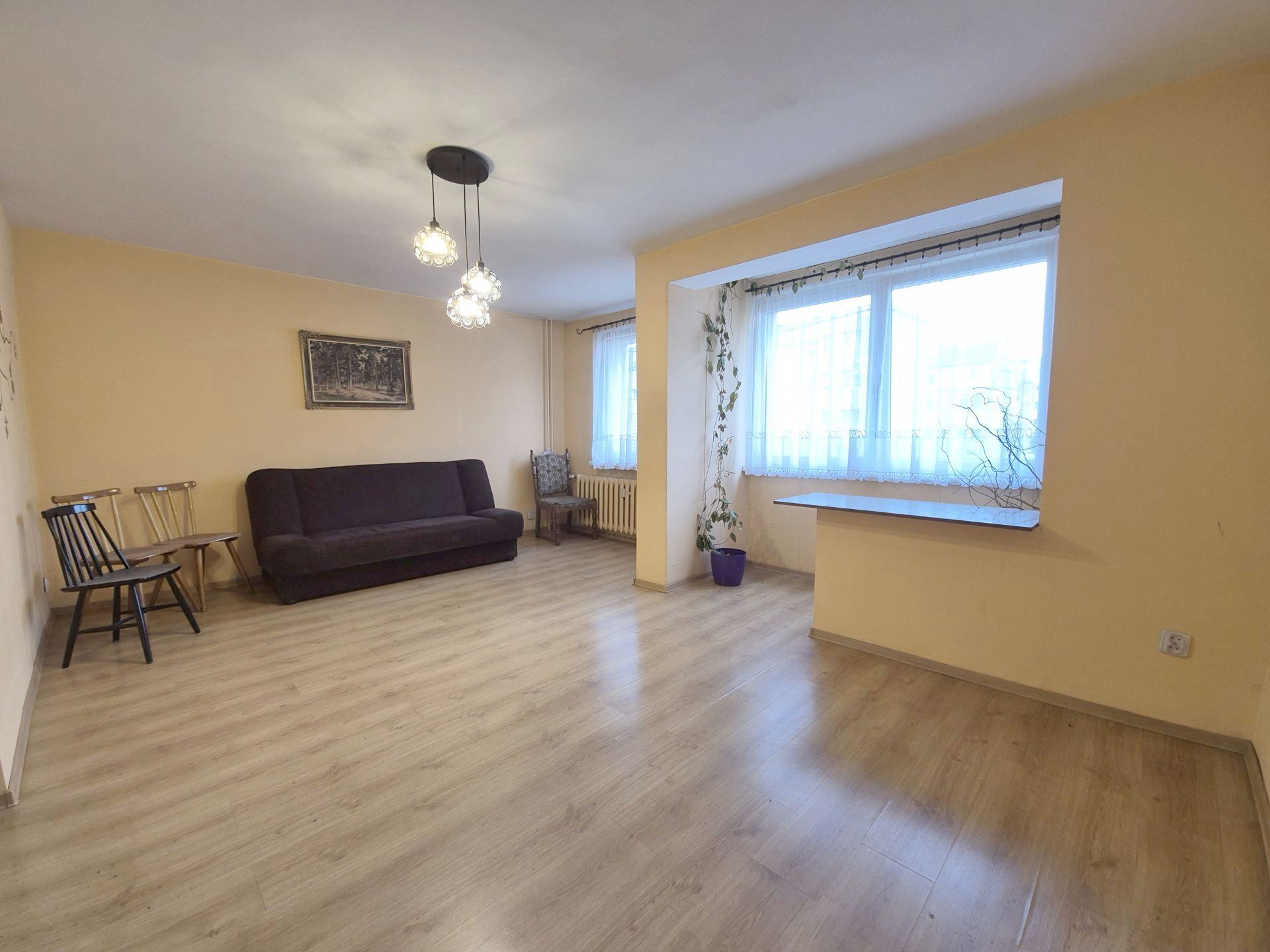 Mieszkanie wymaga niewielkiego odświeżenia, co pozwala na wprowadzenie własnych pomysłów aranżacyjnych.